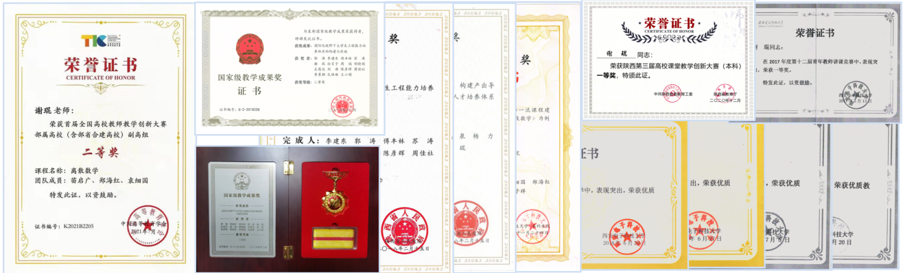 矢志创新,推动教改。在长期的一线教学工作中,谢琨同志积累了大量的经验,进行了深入的人才培养和本科教学工作的探索与实践。近五年主持教育部、省校级教改项目12项,其中省级重点项目4项,作为主要完成人参与教学改革项目8项;在CSSCI、中文核心等期刊发表教改论文9篇。作为课程负责人获首批陕西省线下一流课程1门,2021年被推荐国家级线下一流课程评选(在评)。经过长期的探索实践,教学改革成绩显著:获首届全国高校教师教学创新大赛二等奖(西电唯一),国家级教学成果奖二等奖,陕西省教学成果特等奖、一等奖、二等奖各1项,陕西省高校课堂教学创新大赛一等奖,第三届全国“互联网+”老员工创新创业大赛优秀导师奖和首届全国“互联网+”老员工创新创业大赛陕西赛区优秀导师奖,陕西省高校教师微课教学比赛三等奖,必威西汉姆联第十二届讲课竞赛一等奖,必威西汉姆联优秀教学质量奖一等奖等校级以上教学奖项近30项。