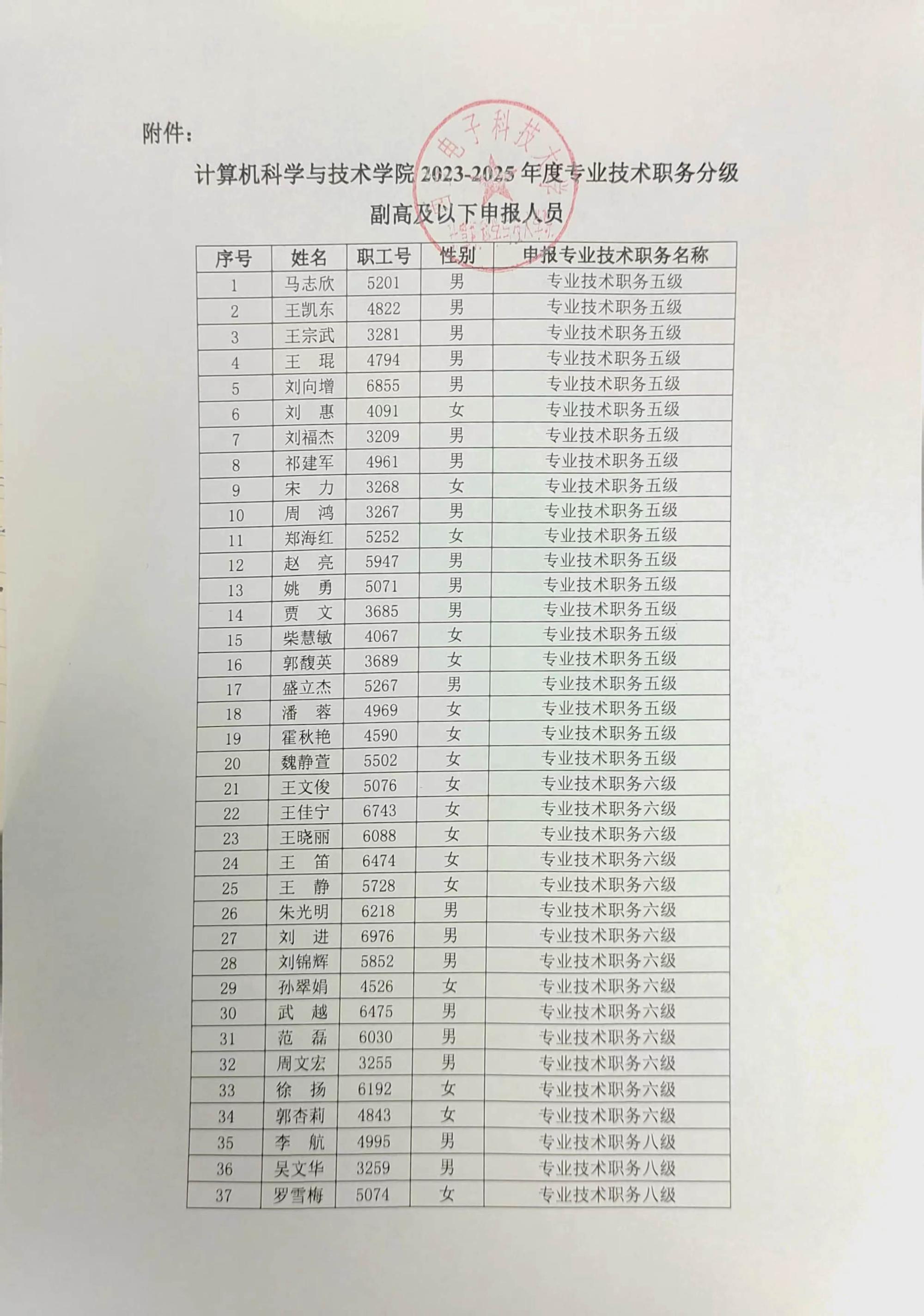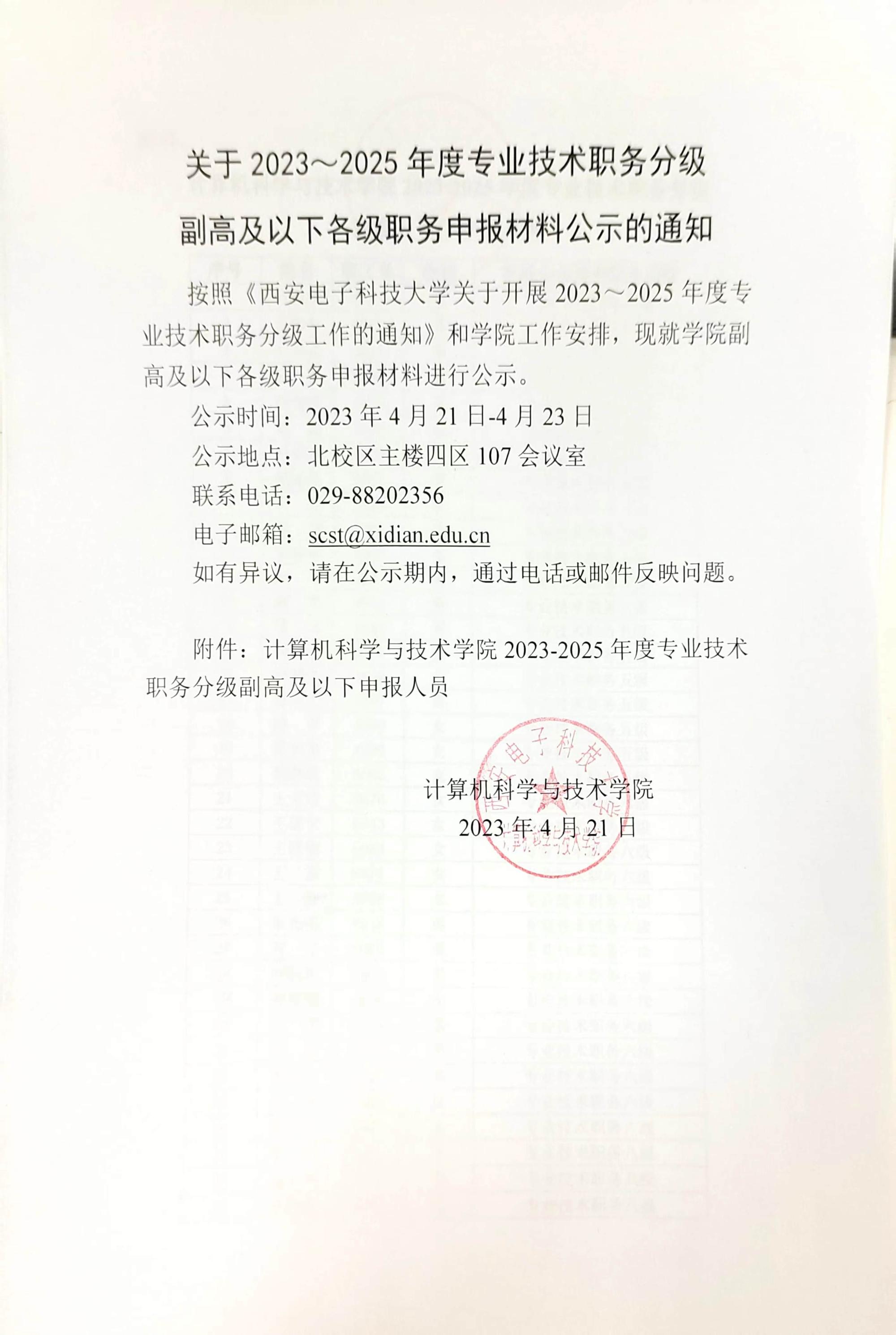 关于2023~2025年度专业技术职务分级副高及以下各级职务申报材料公示的通知