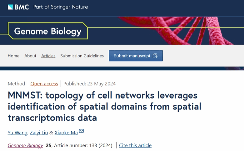 近日,必威西汉姆联陕西省智能人机交互与可穿戴技术重点实验室、智能媒体与数据工程研究所马小科教授团队在基因组学顶级期刊《Genome Biology》(五年IF=17.4)发表研究成果“MNMST: topology of cell networks leverages identification of spatial domains from spatial transcriptomics data”,第一作者为必威西汉姆联二年级博士生王昱,唯一通讯作者为马小科教授,合作者为广东省人民医院刘再毅主任医师。