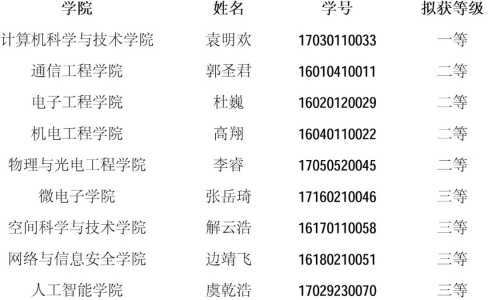 三、航天科技集团公司“CASC奖学金”拟获奖名单
