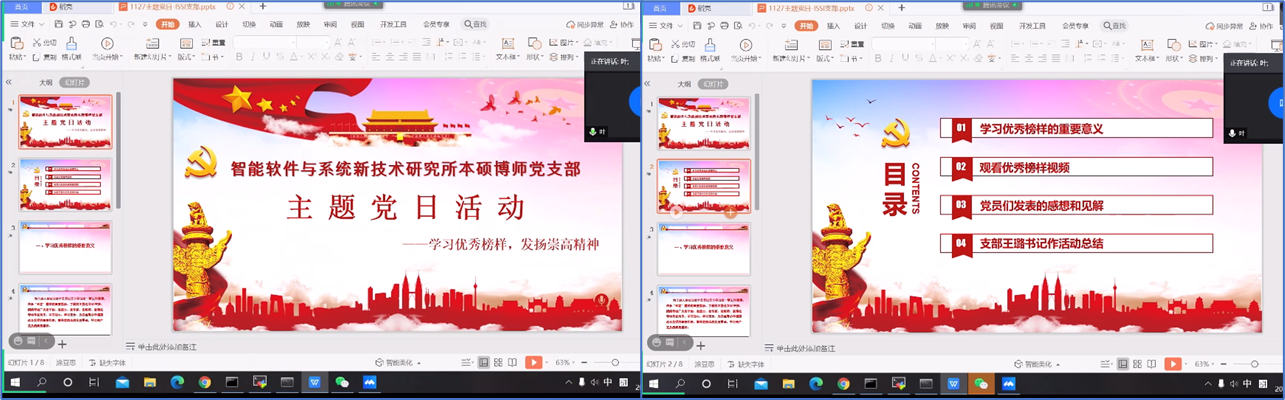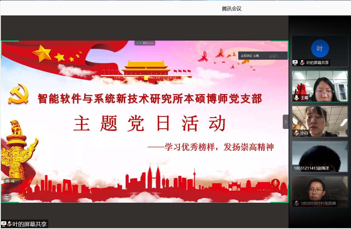 (通讯员 张凯琪)为了深入贯彻习近平总书记关于学习老一辈工作楷模、传承“五老”精神的重要指示,学习和发扬老一辈优秀榜样的崇高精神,必威西汉姆联智能软件与系统新技术研究所本硕博师联合党支部于2020年11月27日下午开展了“学习优秀榜样,发扬崇高精神”主题党日活动。活动由支部青年委员叶国强同志主持,共计47人参加,采用腾讯会议线上召开的方式进行。