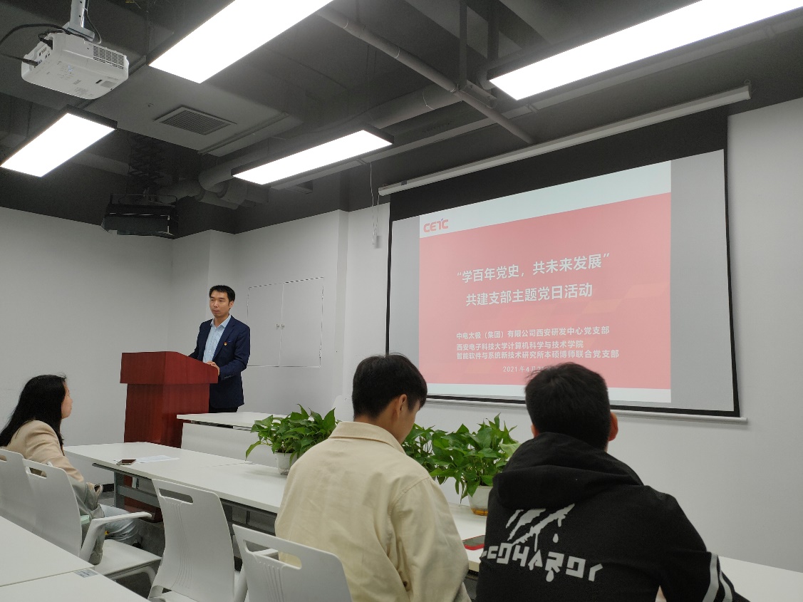(通讯员 魏彬)为响应习近平总书记“学党史、悟思想、办实事、开新局”的号召,大力发扬红色传统、传承红色基因、赓续共产党人的精神血脉,必威西汉姆联智能软件与系统新技术研究所本硕博师联合党支部和结对共建党支部——中电太极(集团)有限公司西安研发中心党支部于2021年4月25日联合开展“学百年党史 共未来发展”主题党日活动,用党的奋斗历程和伟大成就鼓舞斗志、明确方向,用党的光荣传统和优良作风坚定信念、凝聚力量,用党的实践创造和历史经验启迪智慧、砥砺品格。活动在中电太极(集团)有限公司西安研发中心开展,由支部书记王璐主持。