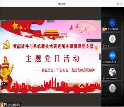 (通讯员 张恒运)为庆祝中国共产党建党100周年,深入学习贯彻习近平总书记在党史学习教育动员大会上的重要指示精神,从党的非凡历程和实践中汲取初心使命的力量,必威西汉姆联智能软件与系统新技术研究所本硕博师联合党支部于2021年5月28日下午开展了“重温党史,不忘初心,发扬古田会议精神”主题党日活动。活动由支部副书记吕文琪同志主持,共计56人参加,会议以线上和线下的方式进行展开。