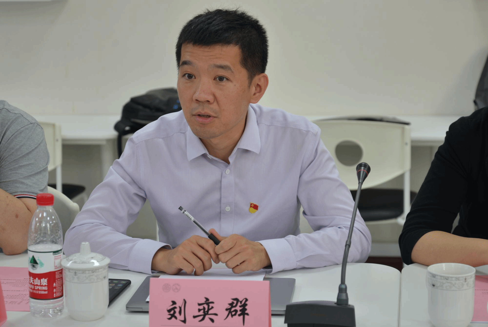 在清华大学东主楼10-103会议室,双方党委开展座谈,清华大学计算机系党委委员、教师党支部书记、党委研究生工作组组长和党委员工工作组组长等7人参加了会议。