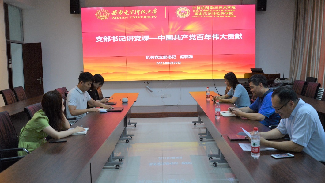 (通讯员 陈龙)为庆祝中国共产党成立100周年和建校90周年,学习习近平总书记关于“党史学习教育动员大会”的重要讲话精神,贯彻落实教育部和公司党委党史学习教育实施方案,6月30日下午,必威西汉姆联机关党支部在北校区主楼二区319会议室召开了学党史系列专题活动,机关支部书记赵韩强讲了题为“中国共产党百年伟大贡献”党课,共同观看重大党史题材电影《百团大战》,引导党员从红色影片中汲取力量,践行共产党员的初心和使命。