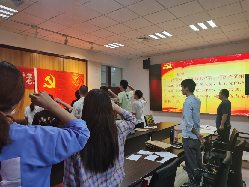 会议结束之前,在王炳波同志的带领下,同志们在党旗面前重温入党誓词,“我志愿加入中国共产党,拥护党的纲领……。”再次唤醒同志们入党时的铮铮誓言,追寻着自己的入党初心,从中汲取前进的精神动力。一句句庄严的誓词,让大家更加坚定了为共产主义事业奋斗终身的理想信念。同时也用入党誓词时时检视自我,永葆初心,砥砺前行。