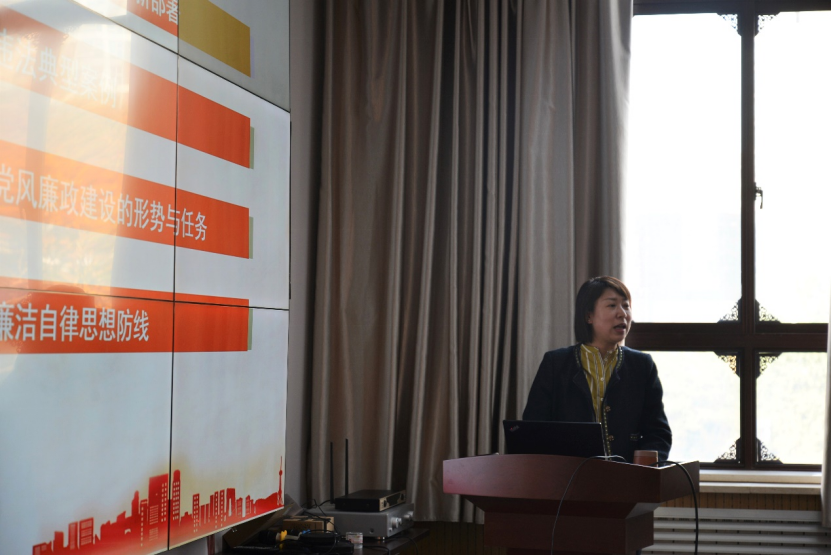 校纪委副书记、监察处处长靳珠做《加强党风廉政建设,筑牢廉洁自律防线》专题宣讲。靳珠结合学习贯彻党的二十大精神,就落实全面从严治党要求进行解读,并围绕党的六大纪律、中央八项规定精神及师德师风建设三方面,详细讲解了高校教职工常见的违反党的六大纪律、中央八项规定精神及师德师风失范行为表现形式,深刻剖析了近年来高校相关违纪违法典型案例,并结合工作心得体会,就如何抓好廉政风险防控工作提出了具体建议。在分析当前公司党风廉政建设面临的新形势新任务的基础上,她谈到,公司广大党员干部教职工要坚守为党育人、为国育才的初心使命,“知敬畏、存戒惧、守底线”,始终保持对法律、纪律和制度的敬畏之心,把信任当作责任、把严管当作厚爱,自觉筑牢拒腐防变的思想防线,做守纪律、讲规矩的模范。