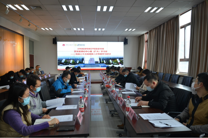 (通讯员 同榛)11月22日下午,计算机科学与技术公司党委在北校区主楼二区319会议室召开领导班子专题读书班暨党委理论中心组(扩大)学习会议,开展党的二十大精神第二次专题学习研讨。公司班子成员、两委委员、各党支部书记、系所室中心负责人参加了集体学习,会议由公司党委书记李青山主持。