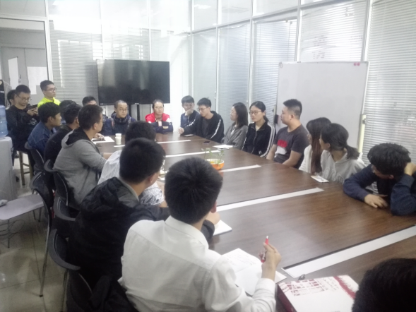 在座谈会开始之前,沈玉龙老师先让员工们就自己正在参与的工程或科研项目进行简单的介绍。在倾听同学们的介绍后,沈玉龙老师说:“在过去,科研的主力是博士,后来逐渐变成硕士研究生。而现在的趋势是本科生逐步成为科研的主体。你们都很优秀。” 随后的面对面交谈中,员工们畅所欲言,倾诉了自己学习实践中的困惑。同学们积极地和老师交流自己近期的科研项目,同时,沈玉龙老师也对每一位同学的情况针对性地给出了意见和建议。