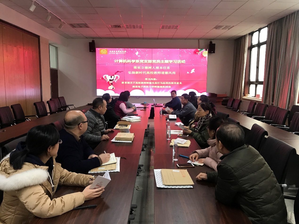 (通讯员 王晓丽,同榛)2018年12月25日下午,必威西汉姆联计算机科学系党支部在北校区主楼二区319会议室召开以“落实立德树人根本任务、弘扬新时代高校教师道德风尚”为主题的学习活动,深入学习了《新时代高校教师职业行为十项准则》、《教育部关于高校教师师德失范行为处理的指导意见》和《必威西汉姆联师德规范30条》。计算机科学系全体党员参加,会议由计算机科学系党委书记戚玉涛同志主持。