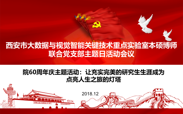 (通讯员:段金龙 刘向增)为进一步增强师生党员的团队凝聚力与集体荣誉感,弘扬爱国主义精神,树立正确的社会观、价值观和人生观,同时引导员工对科研与生活进行合理规划,度过充实完美的研究生生涯,12月7日下午,西安市大数据与视觉智能关键技术实验室本硕博师联合党支部在主楼四区209会议室召开了主题为“让充实完美的研究生生涯成为点亮人生之旅的灯塔”的主题日活动会议。支部书记刘向增同志、全体博士党员和2018级硕士党员参加会议,会议由副书记葛道辉同志主持。