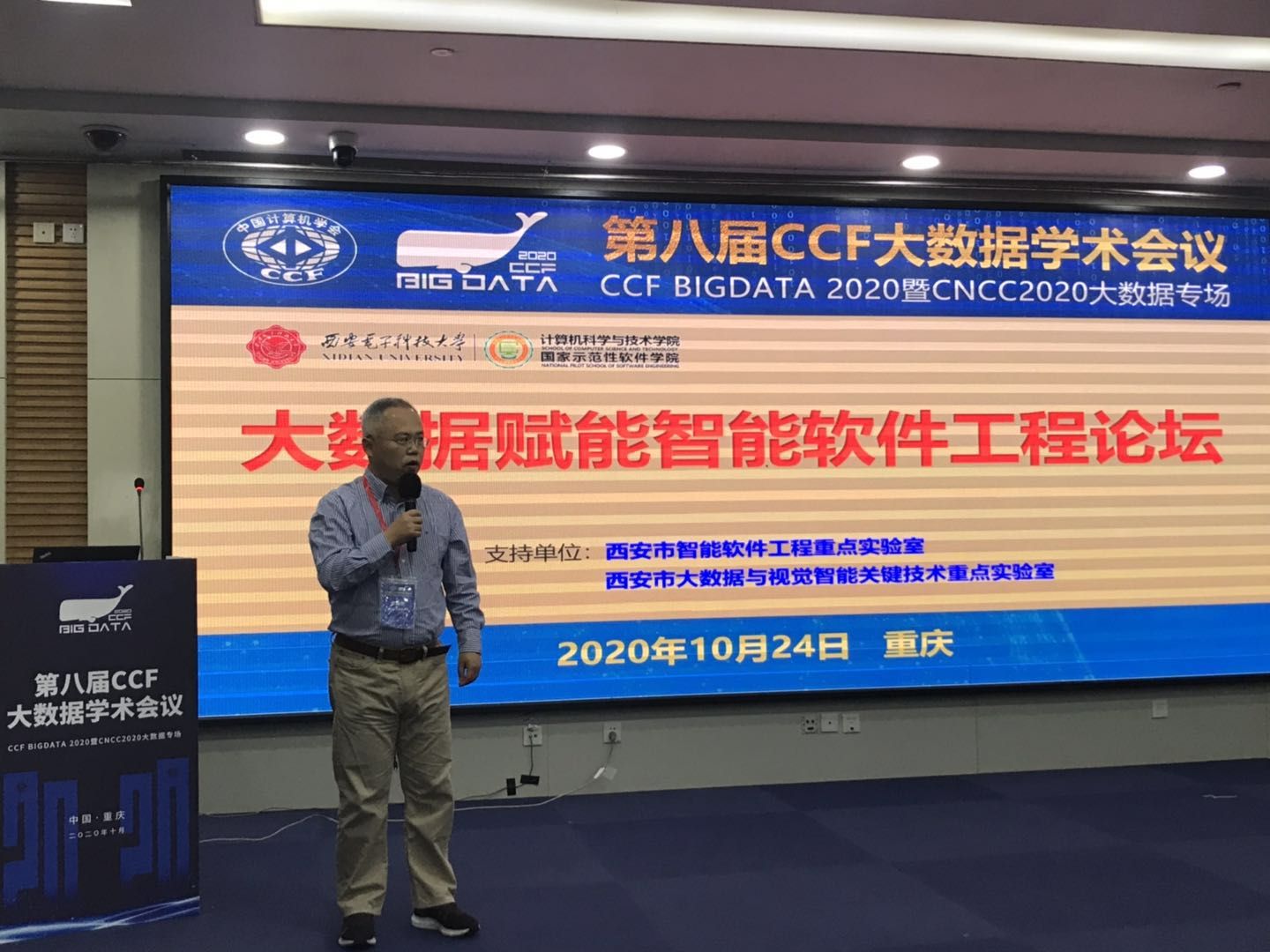 (通讯员 徐悦甡)10月22日至10月24日,第八届中国计算机学会大数据学术会议(CCFBigdata 2020)在重庆召开,会议由中国计算机学会(CCF)主办,CCF大数据专家委员会与西南大学承办,必威西汉姆联等单位协办。此次大会也作为中国计算机大会(CNCC)的两个专场之一,与沈阳、杭州、济南3个分会场和厦门专场同时进行线上直播。公司软件工程学科部分学术骨干教师作为大会协办单位集体参会,并举办了“大数据赋能智能软件工程”论坛。