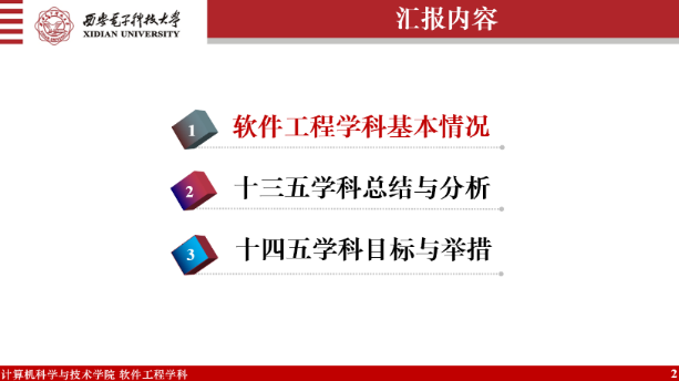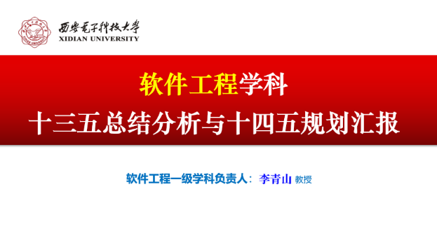 会议开始,首先李青山教授从公司软件工程学科基本情况、十三五学科总结与分析、十四五学科目标与举措三个方面向在座的参会教师阐述了软工团队建设取得的成果与未来的规划。学科基本情况部分,李青山教授从学科历史沿革、学科内涵、学科方向、学科状态数据等方面综合地归纳了公司软工学科的基本情况。然后,又沿着十三五的时间线,着重对比了十三五建设初期与结束时,学科数据的变化,包括团队队伍、人才培养、科研水平、评估结果等。并在总结建设成果的基础上分析了目前还存在的问题。接着,从国家战略、学科评估、公司布局三个层次着眼,阐述了软工学科在人才培养、学科平台、团队队伍、科学研究、社会服务等五个方面的建设举措,以实现学科内涵式发展、体系化发展、突破式发展的总目标。