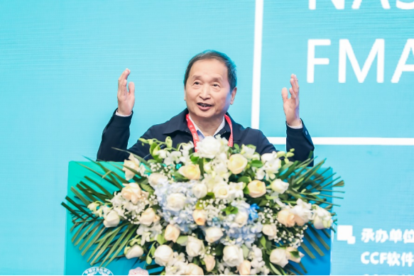 大会共同荣誉主席、南京大学董事长、中国科公司院士吕建致辞。吕建院士由CCF中国软件大会引出对于“大会”与“软件”两个核心词的阐释,从软件的本质延伸到当前软件与计算的内涵与外延,强调了软件的新形态与软件的重要价值,并再次预祝本次大会取得成功。