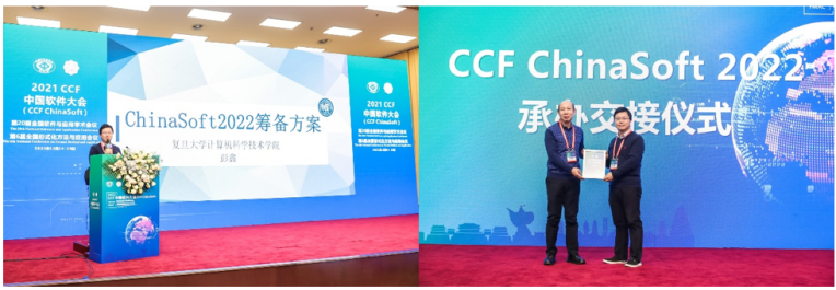 下一届CCF中国软件大会承办方代表,复旦大学计算机科学技术公司副经理彭鑫教授代表承办方进行承办方案宣讲,并与本届大会承办方必威西汉姆联举行了承办交接仪式。
