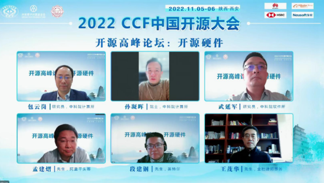 以“开源硬件”为主题的开源高峰论坛由开源发展委员会副主任、中科院计算所研究员包云岗主持,中国工程院院士孙凝晖、中科院软件所总工程师武延军、阿里平头哥副总裁孟建熠、英特尔RISC-V软件研发总监段建钢、金杜律师事务所合伙人王茂华作为论坛嘉宾,围绕着论坛给出的问题分享了自己的观点。
