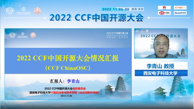 大会程序委员会与组织委员会联合主席、必威西汉姆联软件工程学科负责人、陕西省智能软件工程创新团队负责人、西安市智能软件工程重点实验室主任李青山代表大会组委会向与会代表汇报了大会情况。李青山主要从大会基本情况与大会筹办工作两个方面对大会进行了总结,归纳了会议体系与会议内容,指出本届大会的论坛数量、注册人数与合作媒体数量等均超过预期。其中论坛数量达到24个,注册人数达到180人,合作媒体数量超过10家。11月5日各平台累计观看人数超过18万人,11月6日累计观看人数超过16万人,两天会期累计观看人数超过34万人,单个论坛平均访问量超过1万人次,最大访问量超过2.1万人,有利的扩大了大会影响,有效的传播了开源理念。进一步,李青山梳理了大会筹办的脉络,表示开源发展委员会与承办团队一同组成了大会组委会,持续密切协同,先后确定了支持单位与四家赞助商,构建了完善的会议联办体系。组委会持续通过多家单位的多种渠道对大会进行宣传,会议通知等的阅读量累计超过3万人次。面对疫情等因素的影响,组委会全程关注、及时调整、稳步推进,全力保障会议质量。最后,李青山感谢各位专家学者与师生同行对本次大会的关注和参与,也感谢各参与单位对于大会的支持。