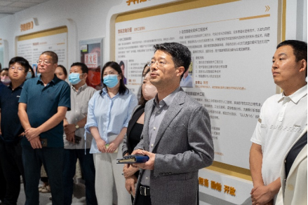 杨鹏飞副教授带领与会嘉宾参观网安大楼公司文化长廊,结合图文并茂的展示内容,全面介绍了公司的变迁发展、办学成果等内容。