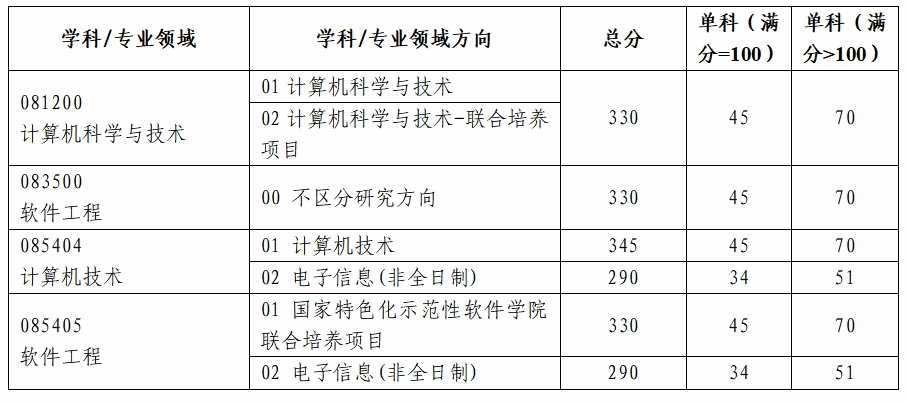普通计划考生初试成绩满足以下条件的考生可参加复试: